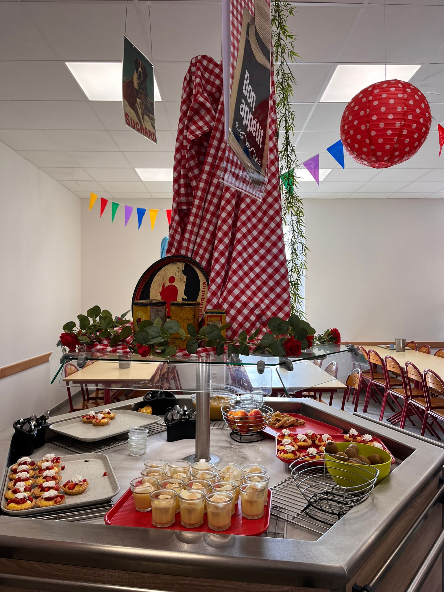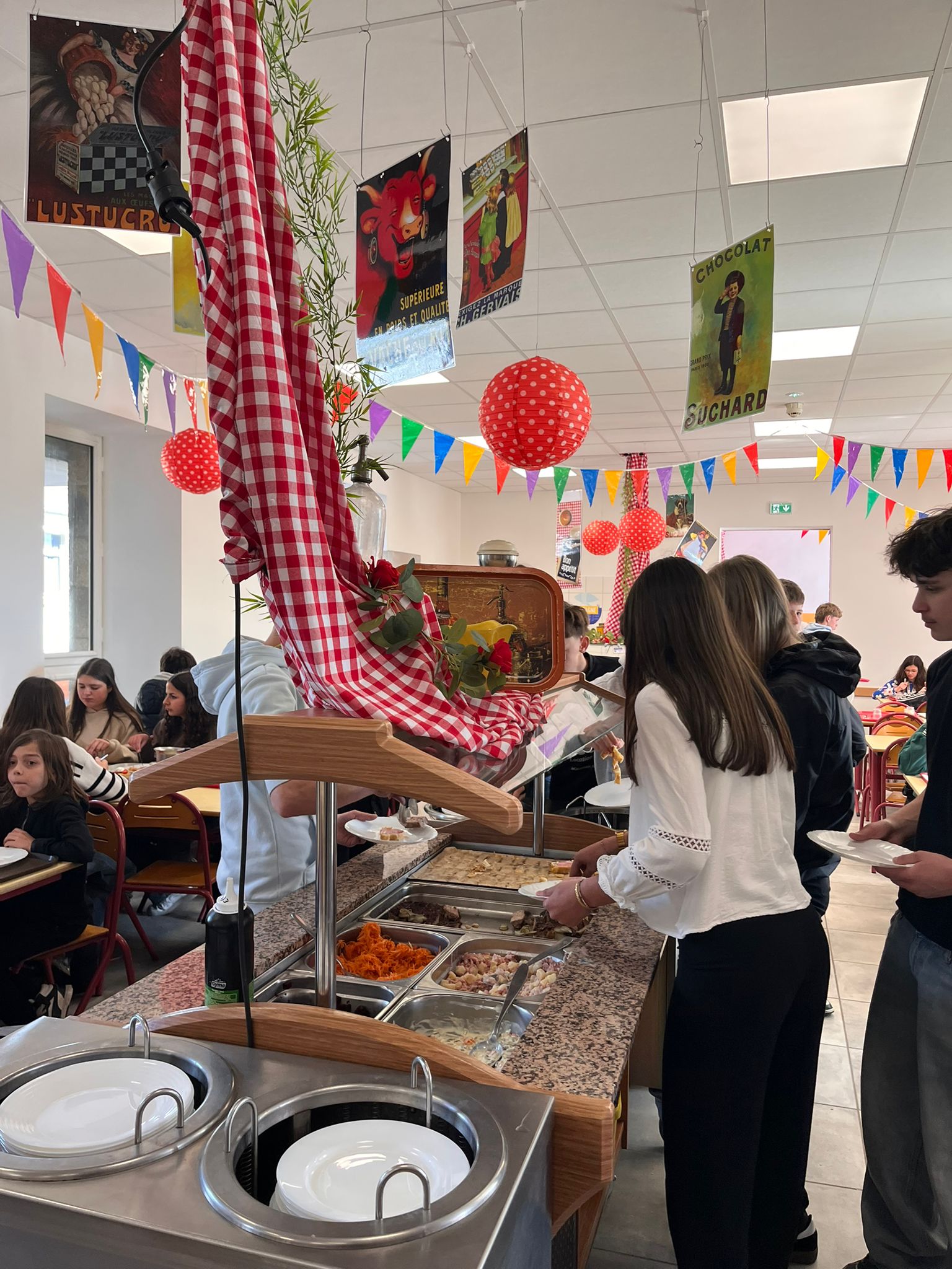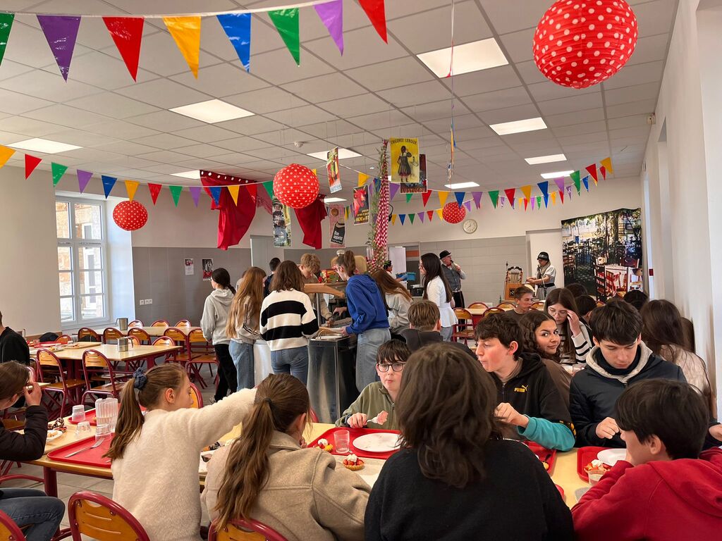 Pour célébrer l’arrivée du printemps, la cantine du collège a pris des airs de guinguette le temps d’un repas pas comme les autres. Décorations colorées, ambiance musicale et tenues accordées, ont permis aux élèves de s’évader le temps de la pause méridienne ce mardi 24 mars.