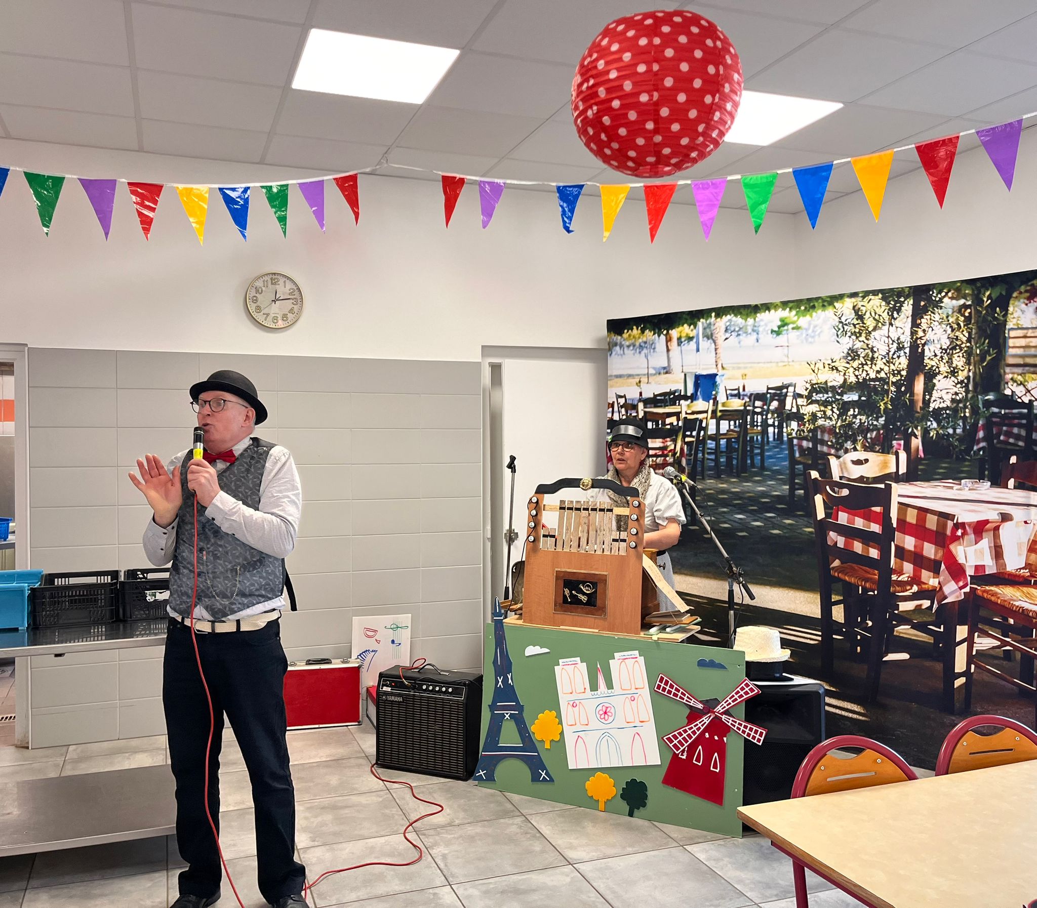 Pour célébrer l’arrivée du printemps, la cantine du collège a pris des airs de guinguette le temps d’un repas pas comme les autres. Décorations colorées, ambiance musicale et tenues accordées, ont permis aux élèves de s’évader le temps de la pause méridienne ce mardi 24 mars.